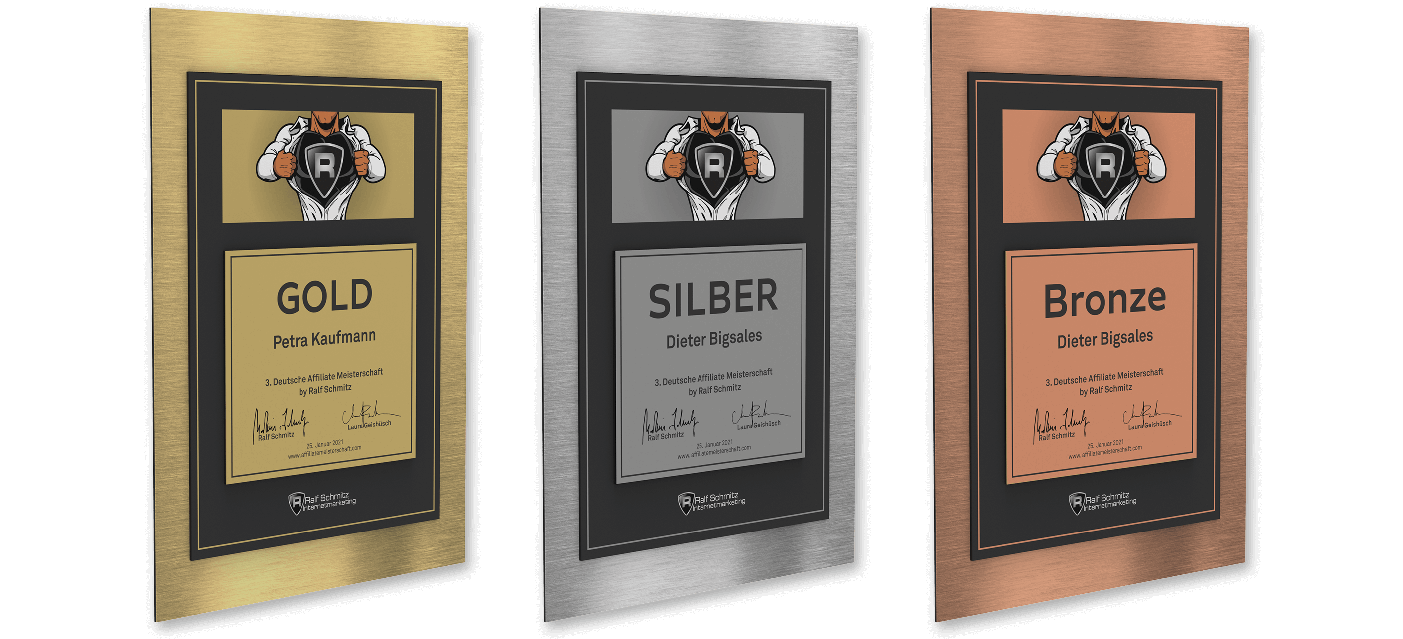 Innerhalb des Sales Angels Affliate Partnerprogramm werden die herausragenden Affiliates mit der Stolzsign Urkunde in 3D geehrt. Wettbewerb und Leistung führen in Verkaufswettbewerben zu Umsatzsteigerungen, die mit dieser Goldenen Urkunde belohnt werden und als Anreiz für kontinuierliche Bestleistung stehen.